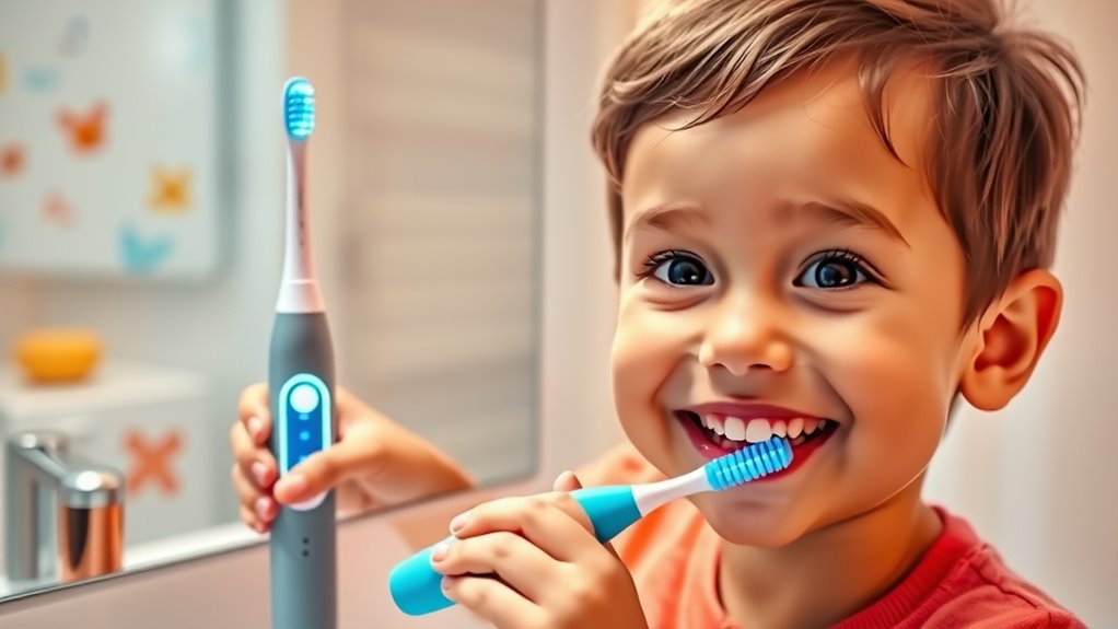 With AI-powered brushes gently guiding your child’s smile, you’re helping them develop healthy habits without any fuss. These smart tools make brushing feel more like a fun adventure, turning what used to be a chore into a delightful routine. As your little one gets used to this gentle tech, they’ll naturally embrace better oral care habits. In time, their bright smile will shine even brighter, thanks to the friendly, innovative support guiding every brushstroke.