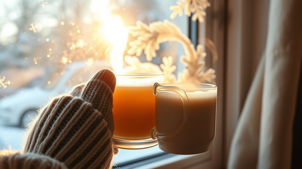 To beat dry mouth during heater season, boost indoor humidity with a humidifier and stay well-hydrated by sipping water often. Avoid caffeine and alcohol, which dry out your mouth, and eat moisture-rich foods like fruits and soups. Chewing sugar-free gum or lozenges can stimulate saliva. Practice nasal breathing overnight and maintain good oral hygiene. For more helpful tips on staying comfortable, keep exploring ways to prevent dryness and keep your mouth moist.