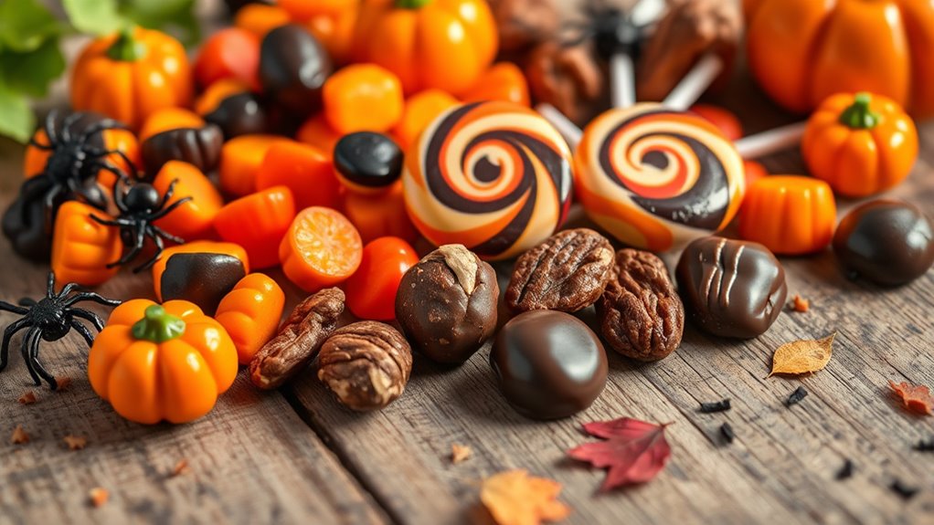 You’ll find that many sugar-free Halloween treats do contain artificial preservatives, acting as silent guardians to extend shelf life. These additives can sometimes raise concerns about health and flavor, making you cautious about what you’re feeding your little ghouls and goblins. While some brands avoid unnecessary preservatives, always check labels to dodge unwanted artificial preservatives and address additive concerns, ensuring your spooky celebrations stay both fun and safe.