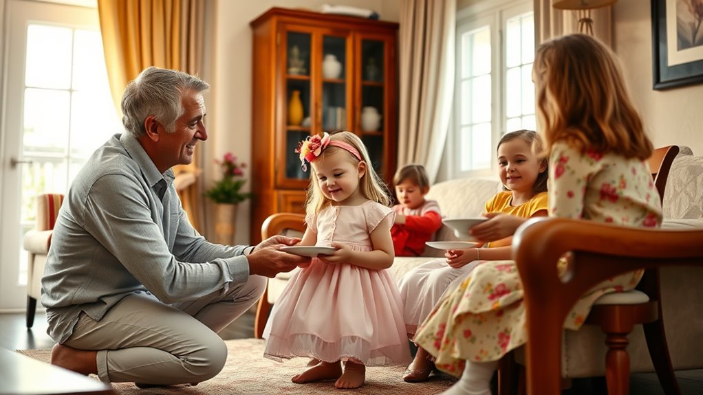 To help your kids navigate family gatherings and socialize confidently, focus on building their trust and teaching respectful manners. Model polite behavior like saying “please” and “thank you,” and encourage them to practice greetings and conversation skills through role-play. Remind them that mistakes are normal and reinforce their efforts with positive feedback. As you support their emotional comfort, they’ll become more confident at family events—keep exploring these strategies to get even better results.
