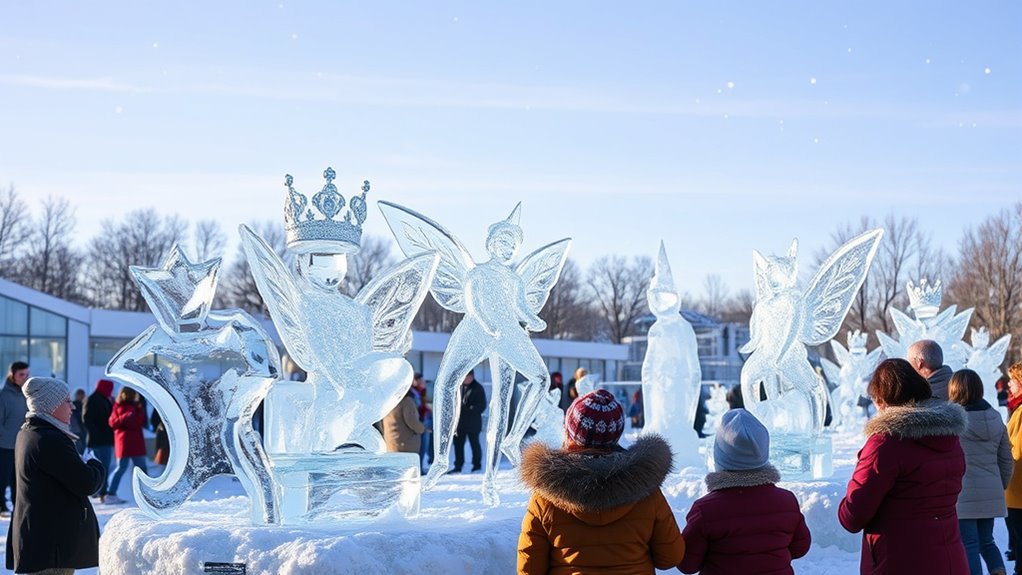 The Tooth Fairy’s Ice Sculpture Contest transforms winter’s icy landscape into a magical display of fairy craftsmanship and artistry. You’ll see shimmering fairy wings, tiny castles, and intricate sculptures carved from enchanted ice by fairy helpers and glowing elves. Magic enhances every detail with movement and sparkle, creating a wonderland of icy beauty. As sculptures come alive with light and frost, the contest celebrates fairy skills and fantasy. Keep exploring to uncover all the enchanting secrets behind this magical event.