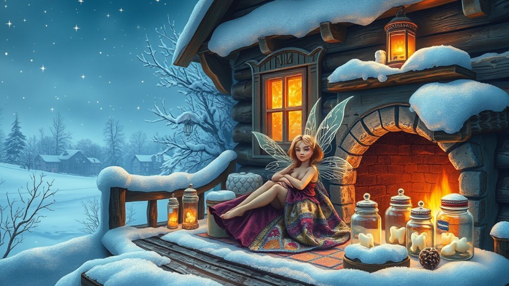 On a quiet winter night, you might imagine the Tooth Fairy gathering her friends for a secret sleepover at a cozy, snowy cottage deep in the woods. Inside, fairy friends share stories, enjoy treats made from honey and berries, and dance in the moonlight while soft lullabies fill the chilly air. Their bonds and celebrations highlight the magic of childhood and friendship, leaving behind a warm glow of wonder that lasts beyond the night—if you want to uncover more, keep exploring.