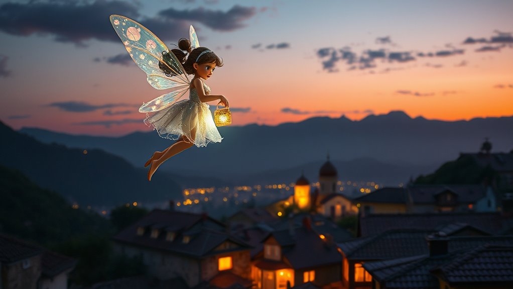Imagine the Tooth Fairy visiting the land of Ratoncito Pérez, blending two enchanting traditions. She steps softly through moonlit skies, her shimmering wings guiding her to the Spanish folklore domain. There, Ratoncito Pérez eagerly exchanges teeth for small gifts, celebrating childhood with cleverness and kindness. Though these characters come from different cultures, their stories intertwine in imagination and wonder. If you keep exploring, you’ll discover even more magical connections between these beloved childhood figures.