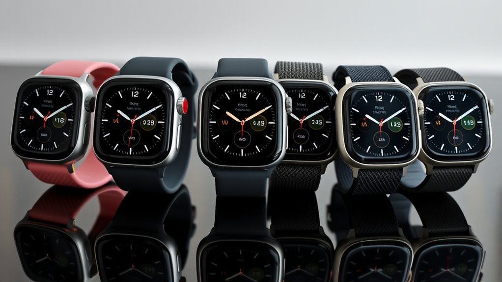 When comparing the displays of the Apple Watch Series 11 and Ultra 3, it’s clear that size and brightness play pivotal roles in user experience. The Ultra 3 boasts the largest, brightest Always-On Retina display, visible even in direct sunlight, which makes it ideal for outdoor use. Its superbright S9 SiP enables quick, touchless interactions and displays multiple complications, enhancing engagement on its larger screen. Meanwhile, the Series 11 features a thinner, lightweight display with superdurable glass that’s twice as scratch-resistant, emphasizing durability without sacrificing clarity. The Series 11 relies on standard touchscreen gestures, while the Ultra 3 offers a custom digital crown, an Action button, and touchless controls for instant access. Both support various watch faces, but the Ultra 3’s expansive display allows for viewing more metrics at a glance.