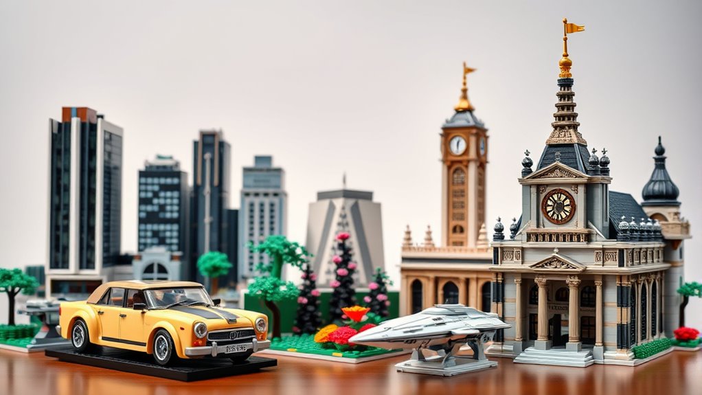 Choosing sets that match your skill level is like finding the perfect puzzle piece. I start by checking the recommended age and piece count—lower numbers suit beginners, while higher counts challenge experts. I also look at the complexity of the build and instructions. If I want a relaxing project, I pick simpler sets. For a real challenge, I go for more intricate, detailed ones. It’s all about matching the set to my confidence and patience.